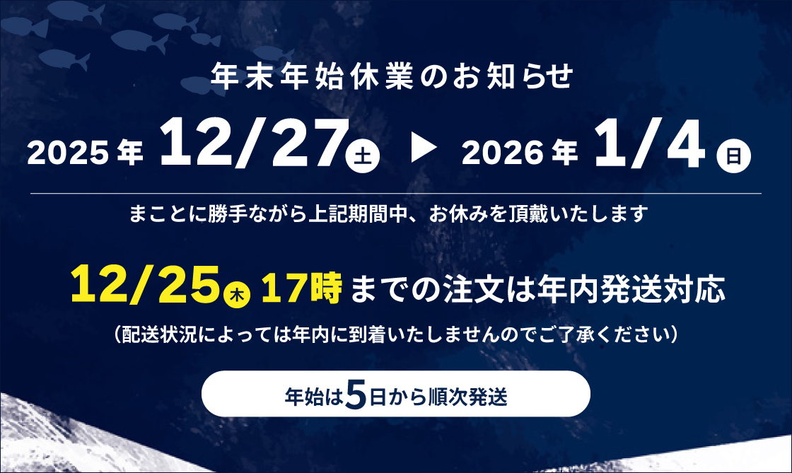 休業明けは、2026年1月5日(月)午前10時より順次ご対応させていただきますが、ご注文やお問い合わせが多く寄せられた場合、ご対応が通常より遅れる場合がございます。